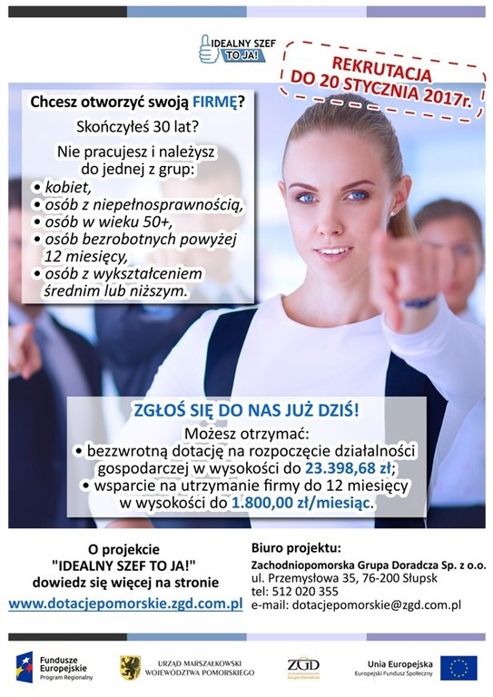 „IDEALNY SZEF – TO JA!” projekt realizowany w ramach Regionalnego Programu Operacyjnego Województwa Pomorskiego 2014-2020