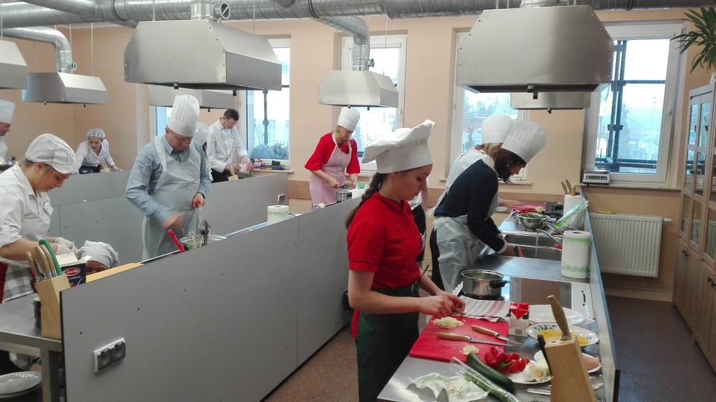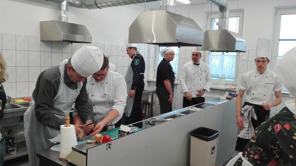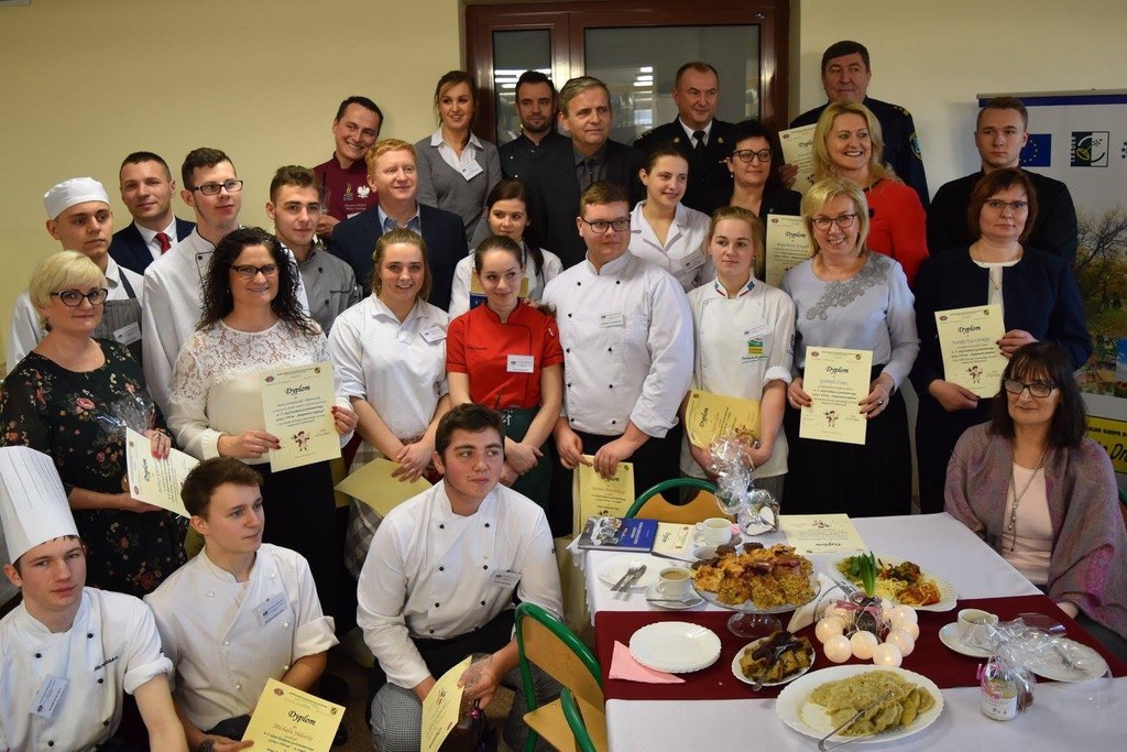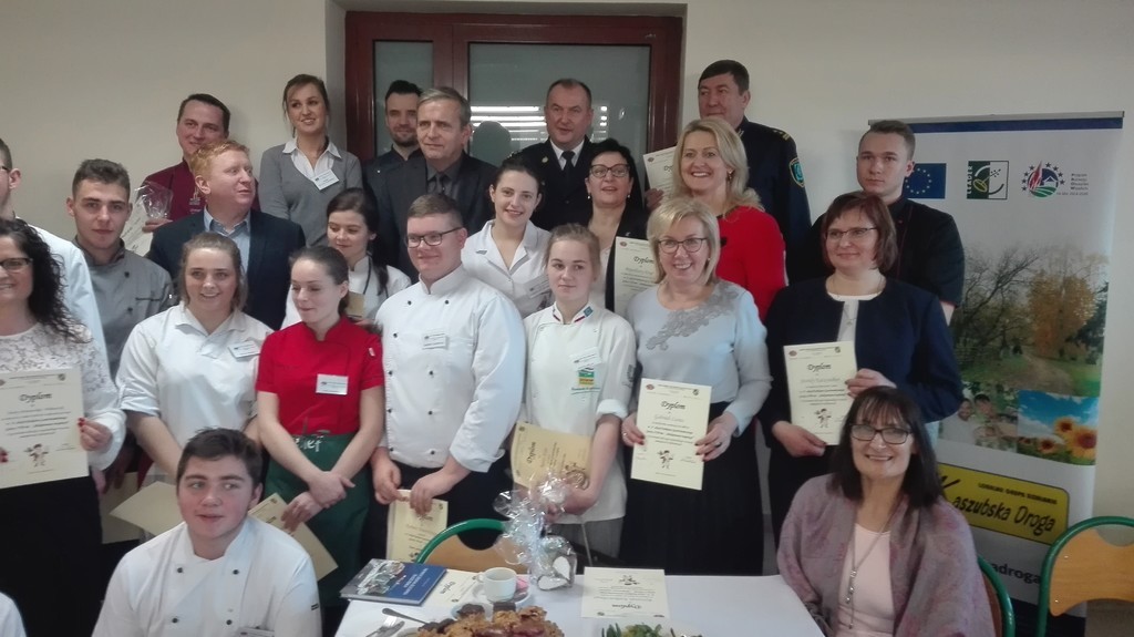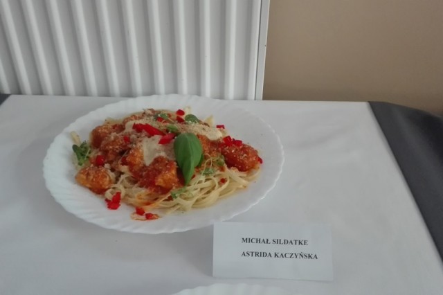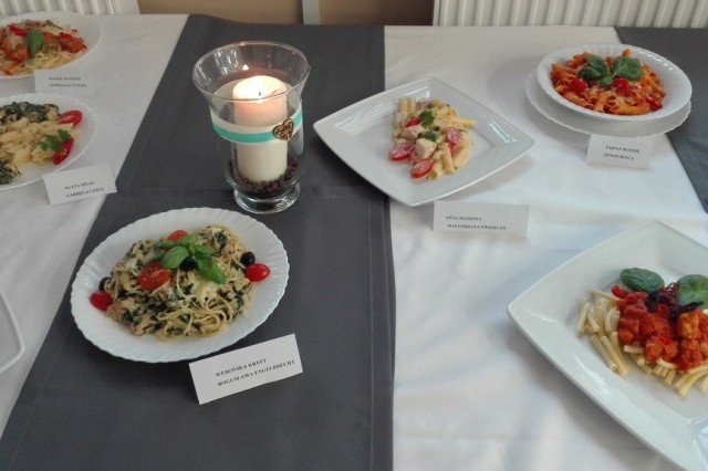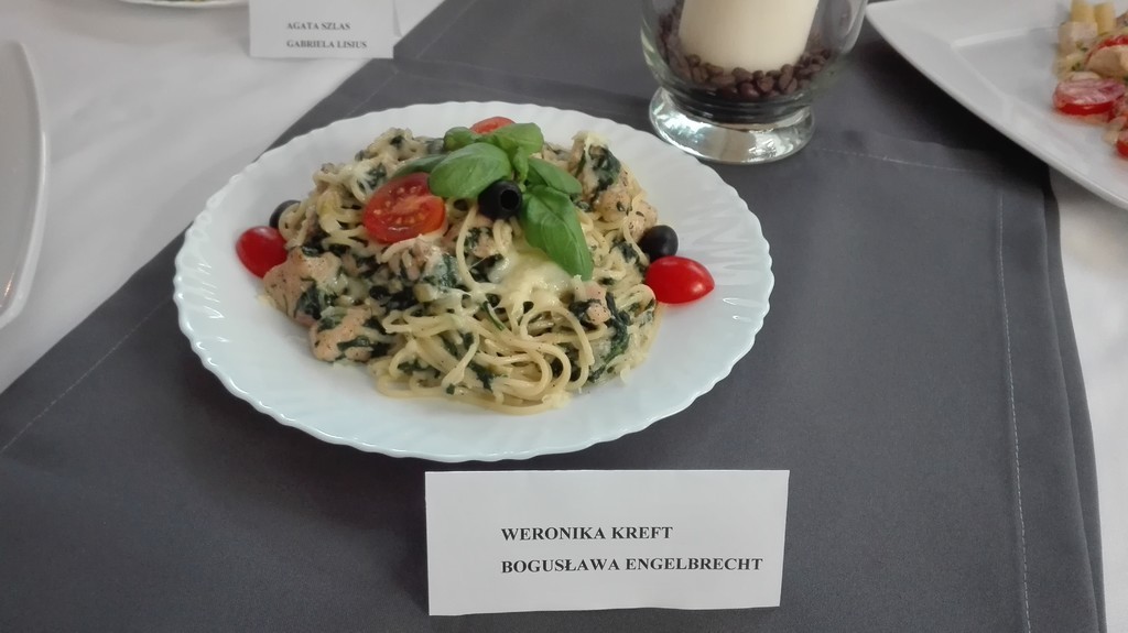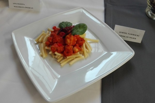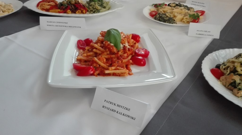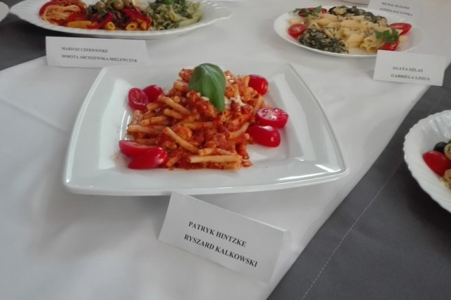 Produktem bazowym dań konkursowych był makaron. Zaproszeni goście wraz z uczniami stworzyli dwu-osobowe zespoły i wylosowali dla siebie stanowiska. Na przygotowanie dań konkursowych Pani Emilia Pobłocka Przewodnicząca Komisji Sędziowskiej przyznała uczestnikom 90 minut. W tym czasie przy wesołej krzątaninie, śmiechu i zabawie powstały kolorowe, pachnące potrawy, które następnie trafiły pod ocenę jury konkursowego w składzie: Płomińska Paulina – Hotel Mercury Gdynia, Cichy Sebastian- Hotel Mistral Gniewino, Gniech Grzegorz- Carving Gniech. Po prezentacji apetycznych dań makaronowych nastąpiło ich skosztowanie przez uczestników współzawodnictwa kulinarnego. Na zakończenie uczestnicy otrzymali z rąk Pana Wojciecha Rogockiego Dyrektora Szkoły słodkie upominki oraz sympatyczne pamiątkowe dyplomy indywidualnie oceniające np. umiejętności, postawę i stopień zaangażowania w ostateczny kształt przygotowanych potraw.