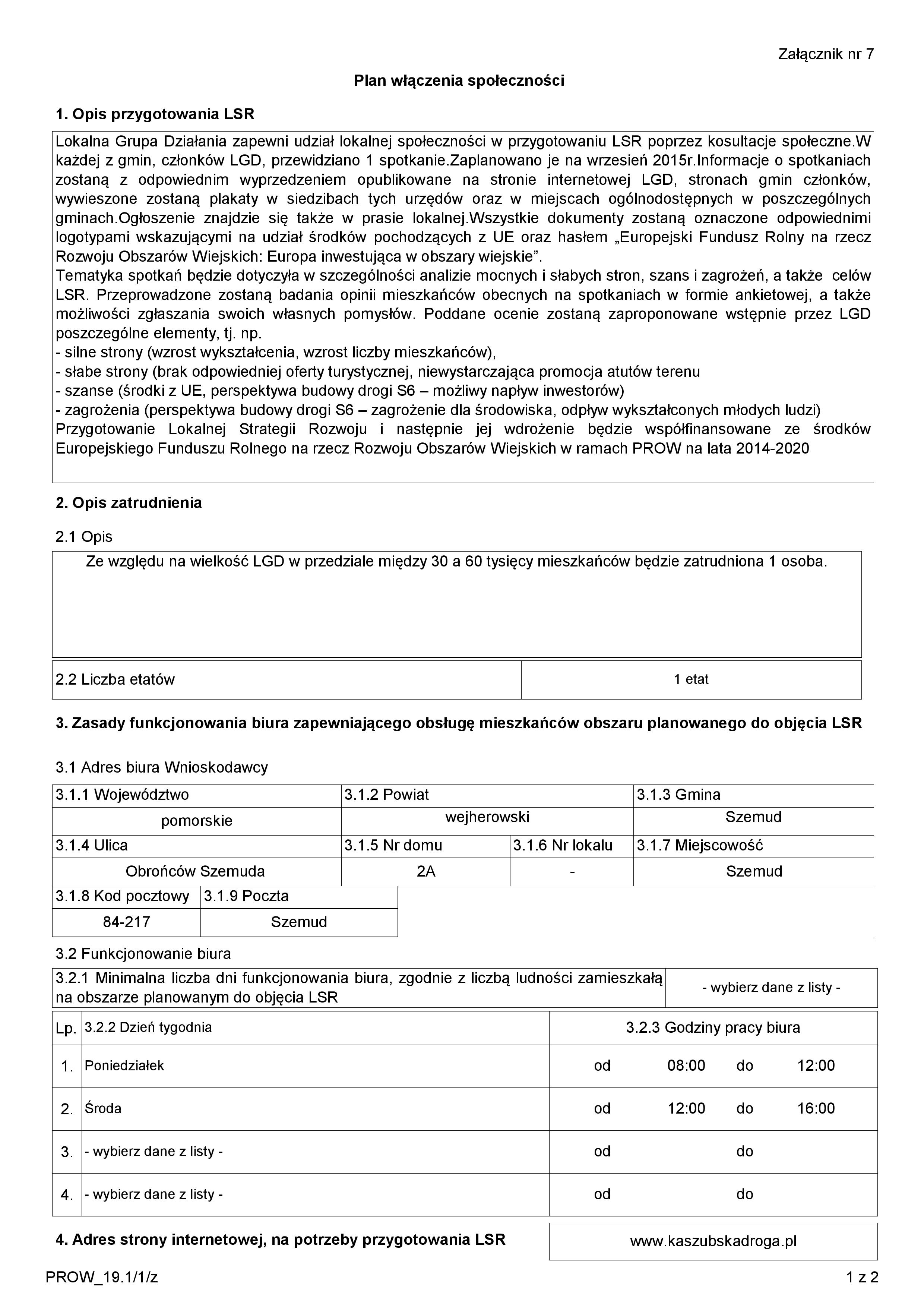Plan włączenia społeczności lokalnej w przygotowanie Lokalnej Strategii Rozwoju Lokalnej Grupy Działania „Kaszubska Droga”