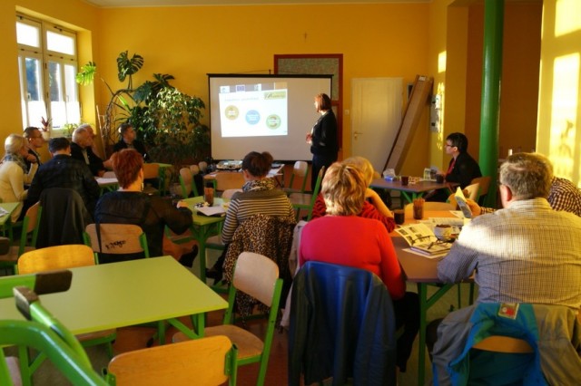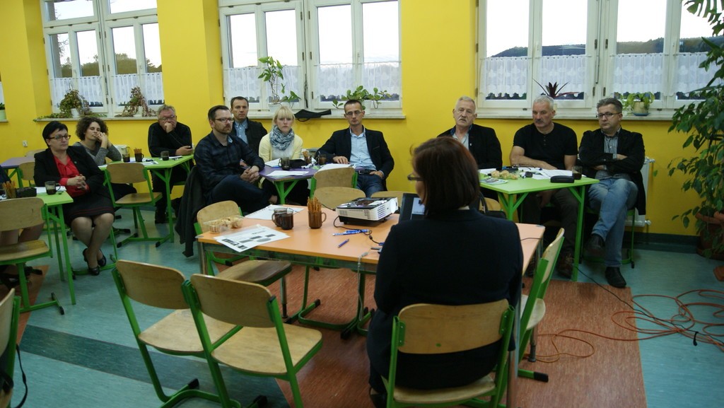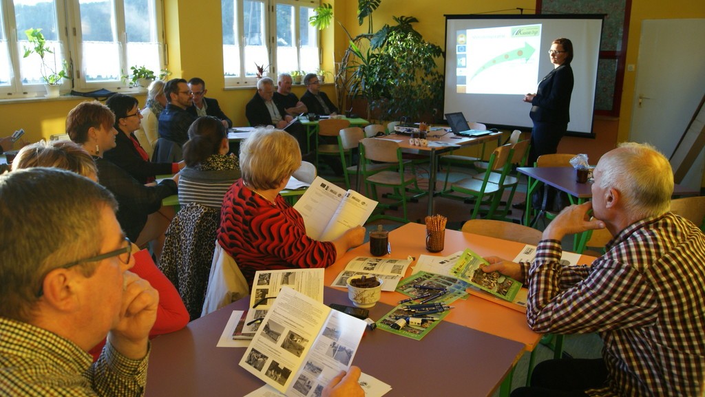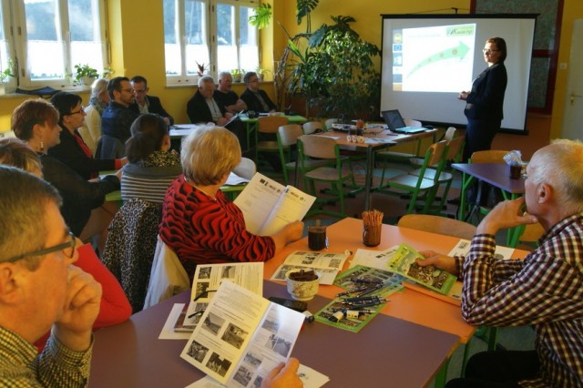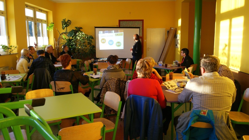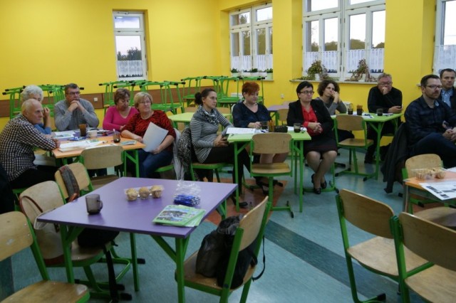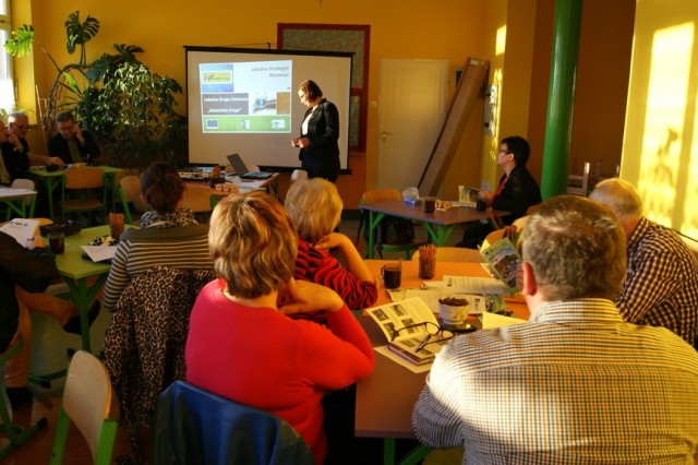 Spotkanie konsultacyjne poprowadziła po raz kolejny (prędzej także w Lini i Luzinie) Pani Astrida Kaczyńska Wiceprezes Lokalnej Grupy Działania „Kaszubska Droga”. W pierwszej kolejności, wedle programu spotkania, licznie zgromadzonym uczestnikom przedstawiona została prezentacja multimedialna zawierająca informacje m.in. o diagnozie obszaru LGD oraz o Programie Rozwoju Obszarów Wiejskich na lata 2014-2020 Wsparcie dla rozwoju lokalnego w ramach inicjatywy LEADER. Potem przedstawiciele lokalnych grup społecznych, tj. organizacji pozarządowych, sektora publicznego i mieszkańcy obszaru LGD mieli możliwość wyrażenia swoich potrzeb, oczekiwań we wspólnej dyskusji, która potem doprowadziła do indywidualnego wypełnienia przez uczestników arkuszy pomysłów. Następnie Pani Astrida Kaczyńska skutecznie zmobilizowała zebranych do podjęcia analizy szans i zagrożeń a następnie debaty nad nimi. Wypracowany materiał przełożony zostały do matrycy SWOT. Kolejna dyskusja podjęta w danym dniu dotyczyła omówienia celów ogólnych i szczegółowych. Zebrane podczas spotkania wnioski i sugestie wykorzystane będą w procesie tworzenia LSR na lata 2014-2020.