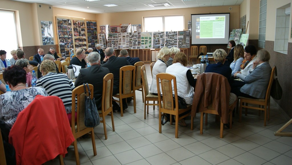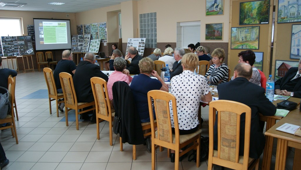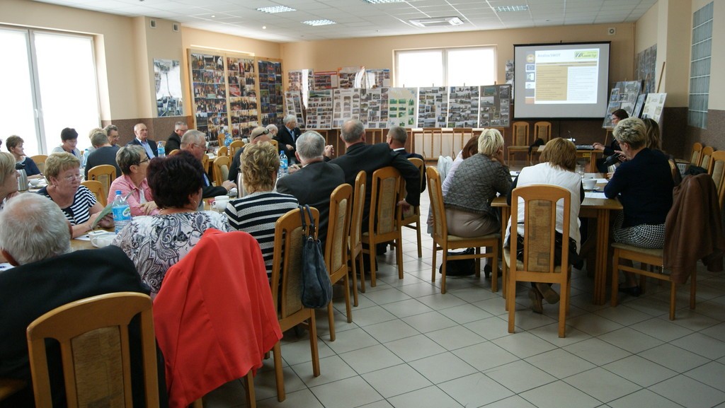 Spotkanie konsultacyjne poprowadziła Pani Astrida Kaczyńska Wiceprezes Lokalnej Grupy Działania „Kaszubska Droga”. W pierwszej kolejności licznie zgromadzonym przedstawiona została prezentacja multimedialna zawierająca informacje m.in. o diagnozie obszaru LGD oraz o Programie Rozwoju Obszarów Wiejskich na lata 2014-2020 Wsparcie dla rozwoju lokalnego w ramach inicjatywy LEADER. Potem przedstawiciele lokalnych grup społecznych, tj. organizacji pozarządowych, sektora publicznego i mieszkańcy obszaru LGD mieli możliwość wyrażenia swoich potrzeb, oczekiwań we wspólnej dyskusji, która potem doprowadziła do indywidualnego wypełnienia przez uczestników arkuszy pomysłów. Następnie Pani Astrida Kaczyńska skutecznie zmobilizowała zebranych do podjęcia analizy szans i zagrożeń a następnie debaty nad nimi. Wypracowany materiał przełożony zostały do matrycy SWOT. Kolejna dyskusja podjęta w danym dniu dotyczyła omówienia celów ogólnych i szczegółowych. Zebrane podczas spotkania wnioski i sugestie wykorzystane będą w procesie tworzenia LSR na lata 2014-2020.