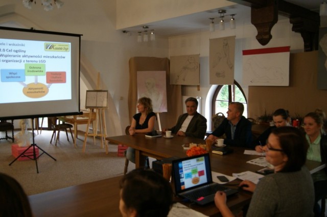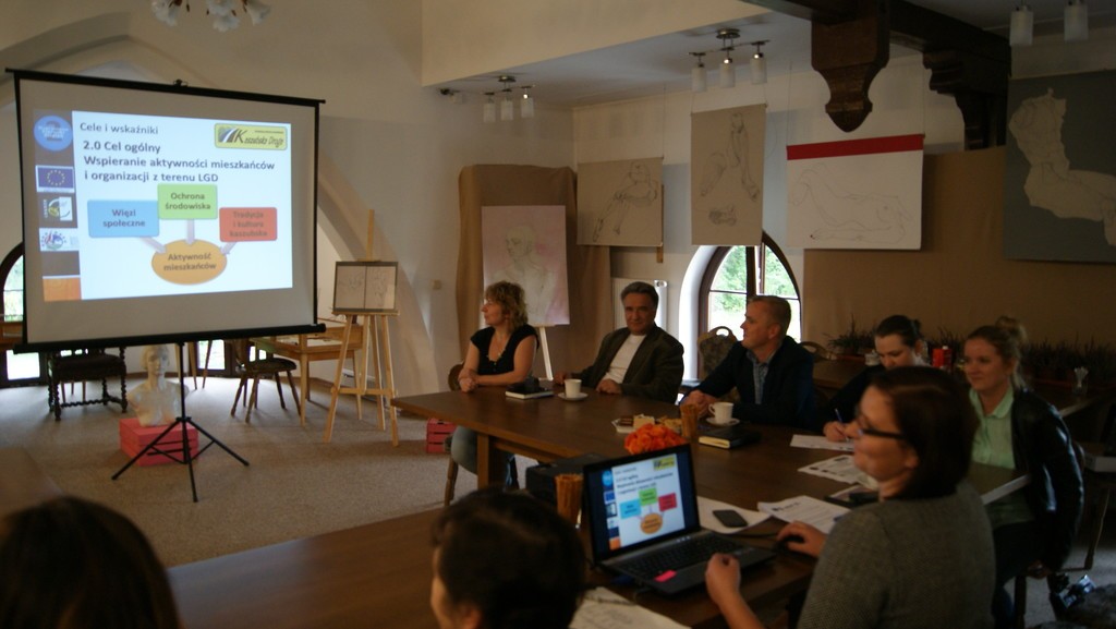 Spotkanie konsultacyjne poprowadziła po raz kolejny (prędzej także w Lini) Pani Astrida Kaczyńska Wiceprezes Lokalnej Grupy Działania „Kaszubska Droga”. W pierwszej kolejności, wedle programu spotkania, licznie zgromadzonym przedstawiona została prezentacja multimedialna zawierająca informacje m.in. o diagnozie obszaru LGD oraz o Programie Rozwoju Obszarów Wiejskich na lata 2014-2020 Wsparcie dla rozwoju lokalnego w ramach inicjatywy LEADER. Potem przedstawiciele lokalnych grup społecznych, tj. organizacji pozarządowych, sektora publicznego i mieszkańcy obszaru LGD mieli możliwość wyrażenia swoich potrzeb, oczekiwań we wspólnej dyskusji, która potem doprowadziła do indywidualnego wypełnienia przez uczestników arkuszy pomysłów. Następnie Pani Astrida Kaczyńska skutecznie zmobilizowała zebranych do podjęcia analizy szans i zagrożeń a następnie debaty nad nimi. Wypracowany materiał przełożony zostały do matrycy SWOT. Kolejna dyskusja podjęta w danym dniu dotyczyła omówienia celów ogólnych i szczegółowych. Zebrane podczas spotkania wnioski i sugestie wykorzystane będą w procesie tworzenia LSR na lata 2014-2020.