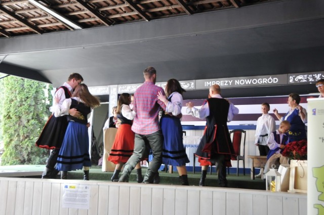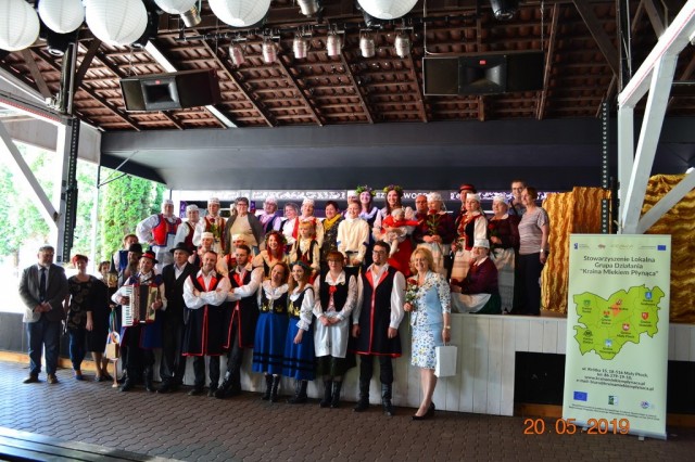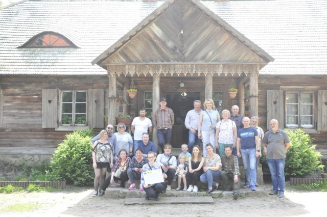 W dniach 18-20 maj Lokalna Grupa Działania „Kaszubska Droga” w 40 osobowym składzie odwiedziła woj. podlaskie, obszar Lokalnej Grupy Działania „Kraina Mlekiem Płynąca”. Podczas wizyty studyjnej uczestnicy zobaczyli m.in. Muzeum Kurpiowskie w Wachu, gdzie zgromadzone są przedmioty pochodzące z Kurpi Zielonych, obrazujące dawną materialną kulturę tego regionu. Najstarsze eksponaty datowane są na koniec XVIII wieku (pasyje-krucyfiksy), a najmłodsze pochodzą z lat 70-tych XX week. Ciekawym punktem pobytu na obszarze danej LGD było zobaczenie Skansenu Kurpiowskiego w Nowogrodzie, który prezentuje dawną historię ludności Kurpiowskiej, a w szczególności to jak się kiedyś żyło i pracowało. To zespół kilkudziesięciu obiektów, których nie sposób zwiedzić od tak, nie zastanawiając się nad ich dawnym przeznaczeniem. Grupa mogła tam zaobserwować budynki mieszkalne, poczynając od tych najbiedniejszych, na bogatszych dworkach kończąc. Skansen tworzą także liczne zabudowania wiejskie, młyny, karczmy, wiatraki oraz wszystko to, co występowało w miejscowościach w dawnych czasach. Istotą wyjazdu studyjnego do LGD „Kraina Mlekiem Płynąca” było wystawienie szerokiej publiczności na scenie w Nowogrodzie przez Regionalny Teatr Dramatyczny z Luzina sztuki teatralnej w języku kaszubskim pt. Òd Gwiôzdczi do swiãtégò Môrcëna Sztërë cządë rokù na Kaszëbach (Od Gwiazdki do świętego Marcina. Cztery pory roku na Kaszubach), która odwołuje się do wierzeń, zwyczajów i obrzędów ludowych obchodzonych jeszcze niedawno powszechnie na Kaszubach, dzisiaj natomiast kultywowanych fragmentarycznie bądź zachowanych tylko w niektórych wiejskich społecznościach na terenie Kaszub. Całość sztuki związana jest z rokiem liturgicznym, rokiem kościelnych świąt, które mają oczywiście swe powiązania z pogańskimi rytami agrarnymi. Człowiek wsi od zarania związany był z ziemią, jej plonami, które były nie tylko dla kaszubskiego gbùra (gospodarza) źródłem utrzymania. Po występie Regionalny Teatr Dramatyczny z Luzina pod kierownictwem Pani Marii Krośnickiej otrzymał gromkie brawa, wiele słów uznania oraz podziękowania od LGD nas goszczącej.