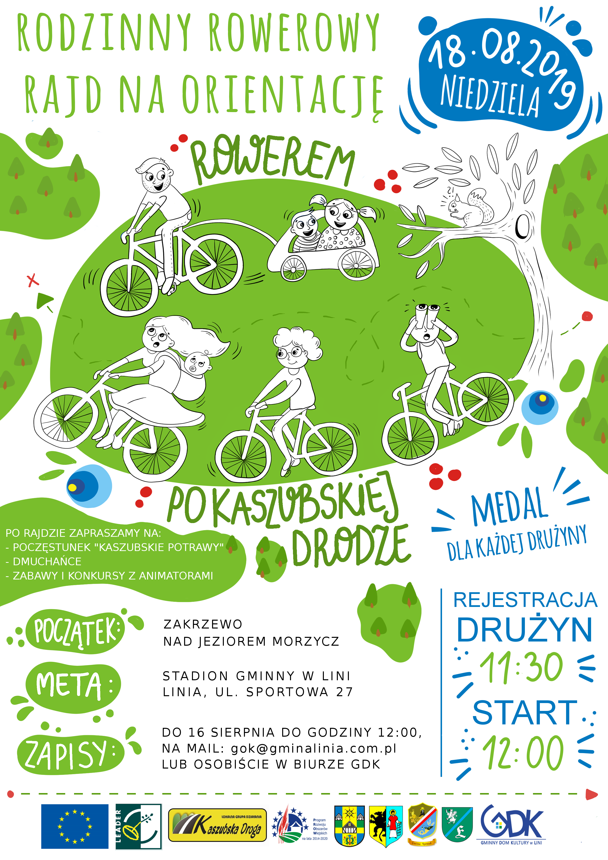 Lokalna Grupa Dzialania "Kaszubska Droga" oraz Gminny Dom Kultury w Lini zapraszaja do Gminy Linia w dniu 18.08.2019 r. na Rodzinny Rowerowy Rajd na Orientację "Rowerem po Kaszubskiej Drodze".