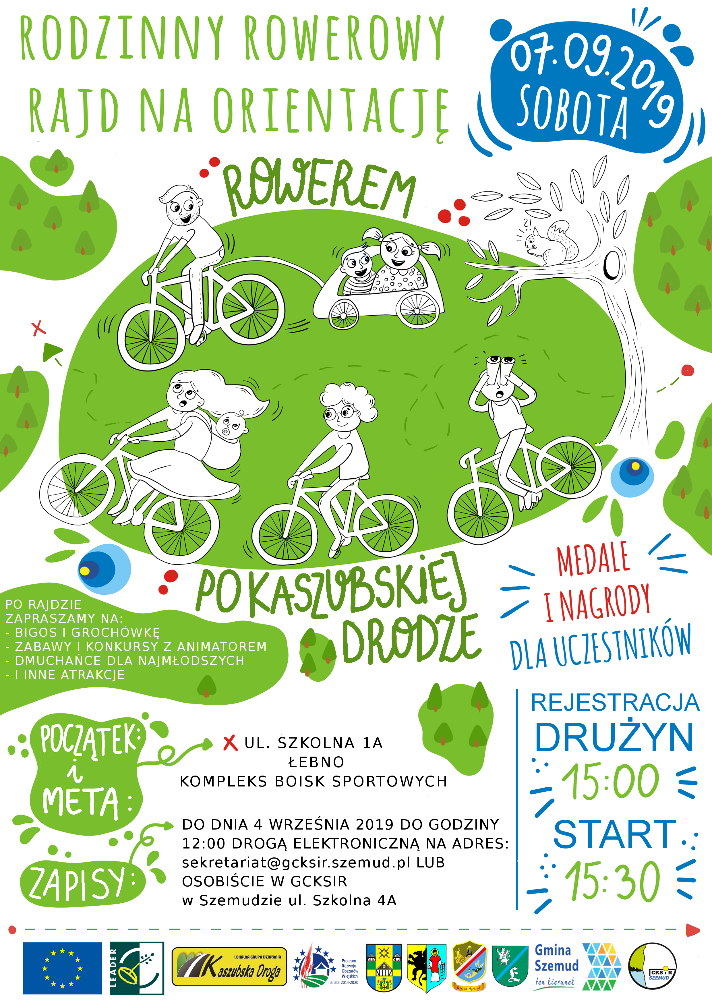 Ostatni już organizowany przez nas Rajd Rowerowy! Tym razem zapraszamy do gminy Szemud - start 7 września o godz. 15.30 w Łebnie w kompleksie boisk sportowych (ul. Szkolna 1a). Szczegóły poniżej i w załącznikach.