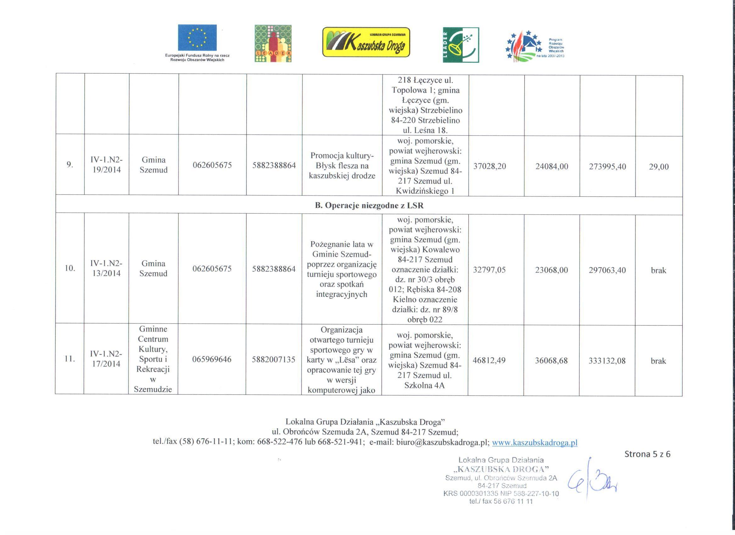 Lista operacji wybranych do dofinansowania w ramach LSR w ramach działania "małe projekty"