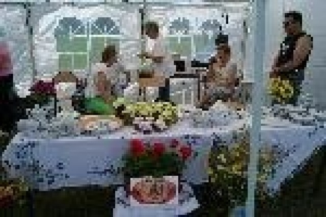 Po serdecznym powitaniu Prezes porwała ze sobą zebranych Wójtów Gmin Partnerskich do wystawionego namiotu LGD. Tam w otoczeniu kaszubskich elementów wystroju, broszur informacyjnych oraz słodyczy reklamowych dokonano uroczystego przypieczętowania, poprzez podpisanie pamiątkowych tabliczek owocnej i efektywnej współpracy między Gminami Partnerskimi a Lokalną Grupą Działania „Kaszubska Droga”. Kolejnym „słodkim”, akcentem było ogłoszenie konkursów kulinarnych dla Kół Gospodyń Wiejskich z obszaru LGD „Kaszubska Droga” w trzech kategoriach tj. potrawa tradycyjna, potrawa wegetariańska oraz potrawa posiadającą w swym składzie truskawkę kaszubską (Kaszebsko Malena).